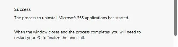 หลังจากดำเนินการลบเสร็จเเล้ว ก็จะขึ้นข้อความเเบบด้านล่างให้เรา รีสตาสคอมหนึ่งรอบเเล้วค่อยดำเนินการติดตั้ง Office ใหม่ครับ