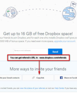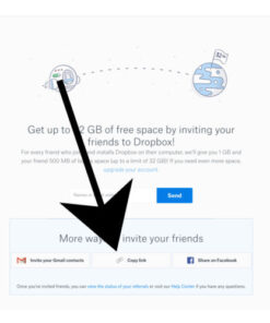 อัพเกรดบัญชี dropbox ของคุณลูกค้า ให้ใช้ได้ถึง 18 GB โดยเดิมทีนั้นบัญชีเดิมจะใช้ได้ 2GB แต่เราจะใช้ reference link ทำให้ได้พื้นที่เพิ่มโดยการชวนเพื่อนมากถึง 18GB (เพิ่มจากเดิมมา16GB) หากเดิมทีเคยชวนเพื่อนไว้แล้วได้พื้นที่บางส่วนก้จะเพิ่มได้เท่าที่เหลือและเต็มที่ 18GB